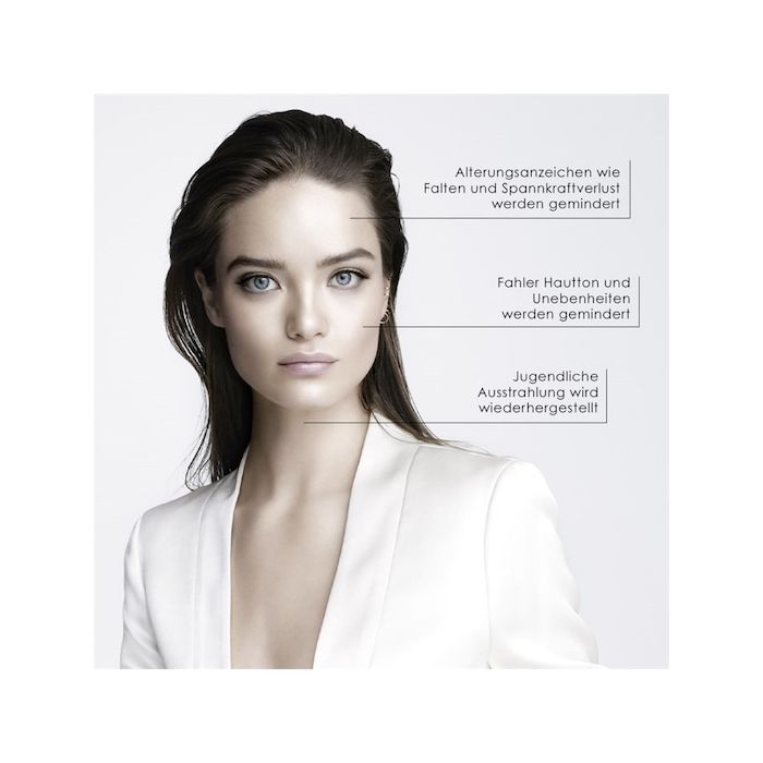 Während du schläfst (oder es in deiner abendlichen Pflegeroutine einsetzt), beginnt das Konzentrat auf tiefer Ebene zu arbeiten: Der Wirkkomplex dringt in die Zellen ein, aktiviert die Regenerationsmechanismen und stimuliert die Produktion von Elastin und Kollagen. So kann deine Haut in der Tiefe erneuern, sich straffen und wieder kraftvoller wirken.