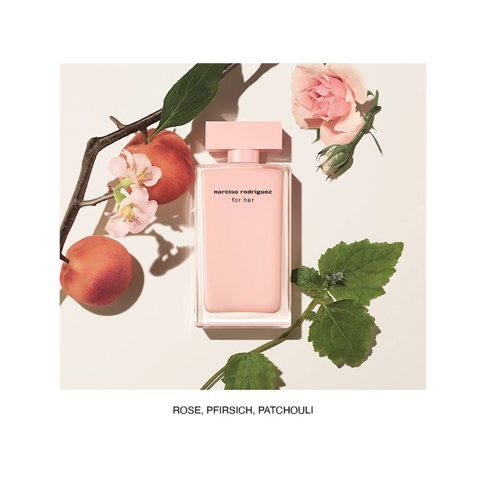 For Her von Narciso Rodriguez ist ein eleganter, sinnlicher Duft voller Weiblichkeit und subtiler Verführung. Die Kopfnote eröffnet mit frischem Neroli und saftigem Pfirsich – eine lebendige, strahlende Kombination, die sofort Aufmerksamkeit erregt und die Persönlichkeit der Trägerin unterstreicht. Im Herzen entfaltet sich der charakteristische Moschus, begleitet von Amber und zarter Orangenblüte. Diese Herznote wirkt weich, elegant und sinnlich, sie hüllt die Haut in eine verführerische Wärme und verleiht dem Duft Tiefe und Ausdruckskraft. Das Herz macht For Her zu einem Duft voller Raffinesse und femininer Stärke. Die Basisnote rundet die Komposition mit Vetiver und Vanille ab. Sie sorgt für einen langanhaltenden, sanften Nachhall, der die floralen und moschusartigen Elemente harmonisch ergänzt. For Her bleibt elegant, modern und unvergesslich auf der Haut.